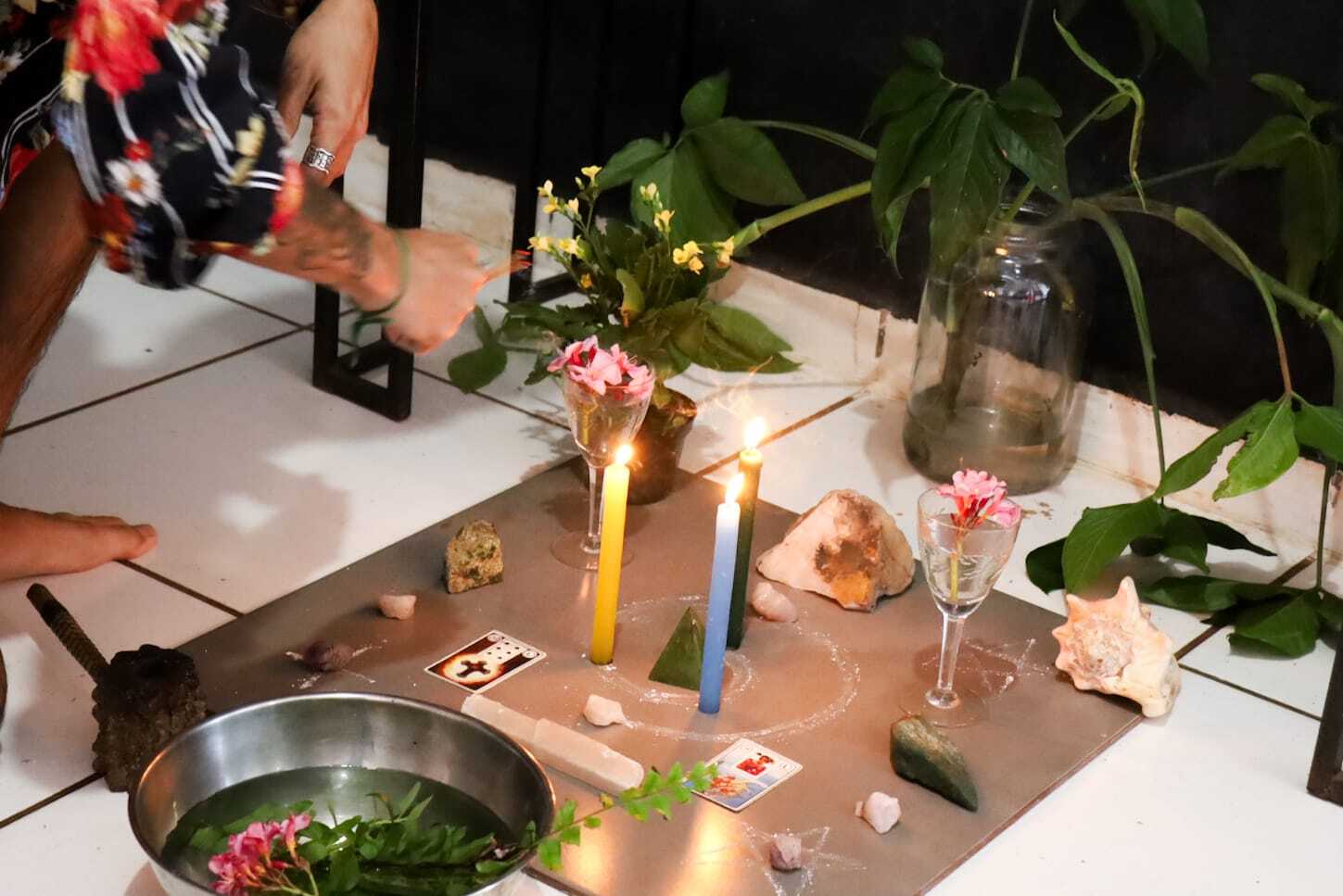 Pedras e velas ‘contam’ que ali a prática tem a ver com a natureza, não com o terror