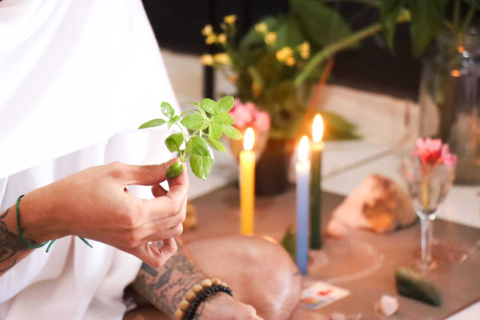 “O quebra-demanda serve justamente para quebrar mal-olhado, energias negativas que possam ser mandadas por pensamento, por palavras, por olhares. O manjericão trabalha os nossos aspectos e harmonizações emocionais, trazendo paz, tranquilidade, equilibrando nossas emoções, nossa sexualidade, nossa criatividade. Traz também uma energia de acolhimento e amor”.
