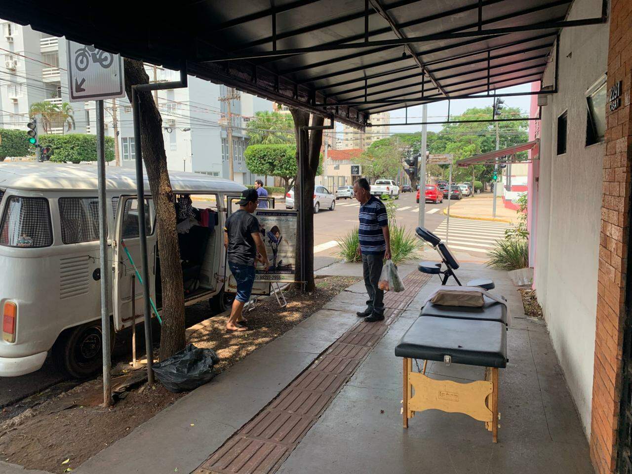 Massoterapeuta atrai curiosos, vence a timidez dos clientes e faz sucesso com consultório improvisado na rua