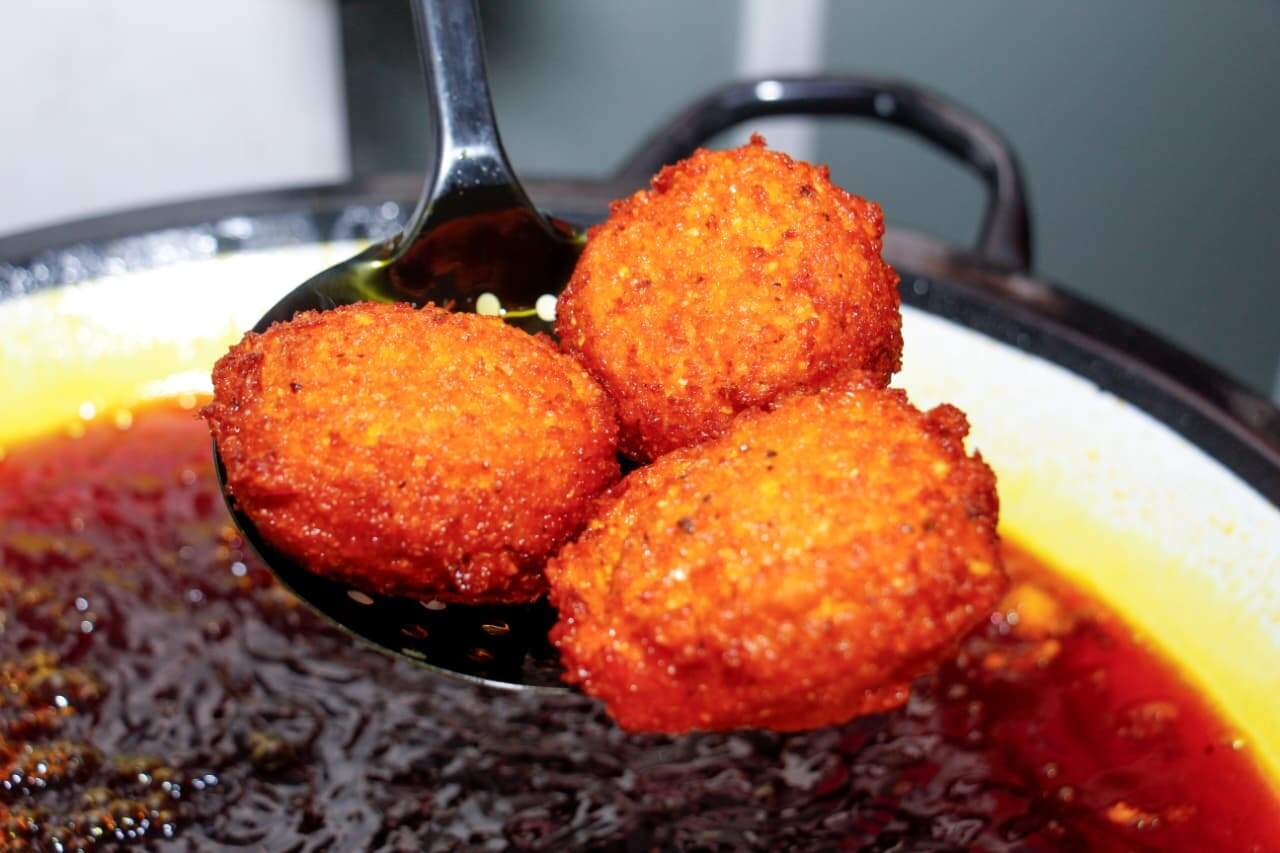 Para os mais moderados, há versões menores. O acarajé tradicional custa R$ 20 e o especial com camarão seco defumado sai a R$ 30. Ele ainda faz porções com seis unidades menores vendidas a R$ 40, porções com dez unidades por R$ 60 e o acarajé de 500 g por R$ 50.
