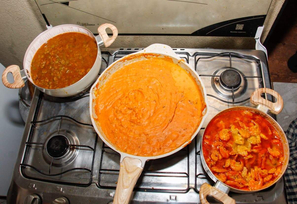 “Sou eu quem faz tudo: da massa aos recheios. Faço o vatapá, o caruru, o vinagrete de tomate e o camarão refogado no leite de coco natural e no azeite de dendê”, destaca.