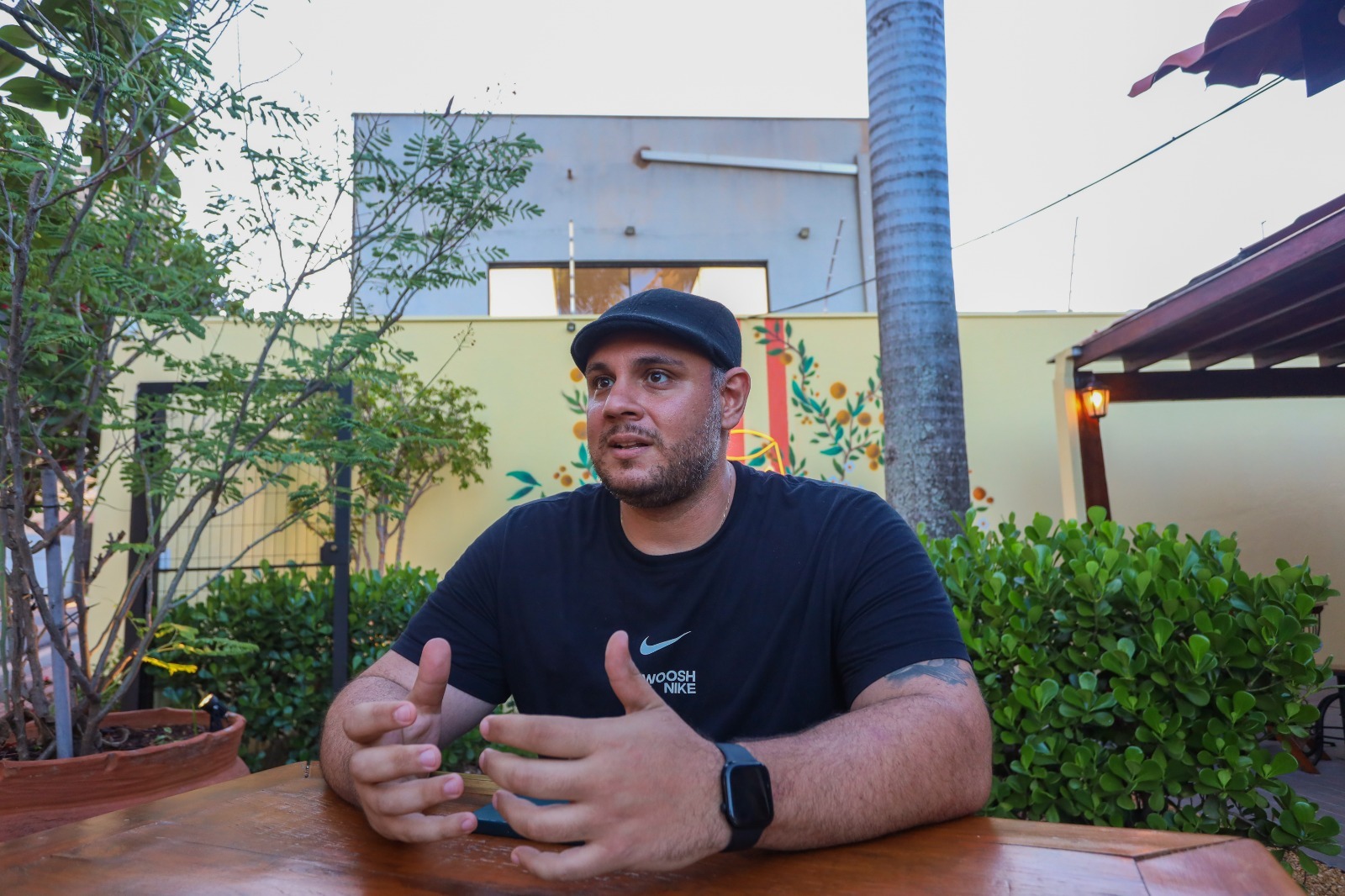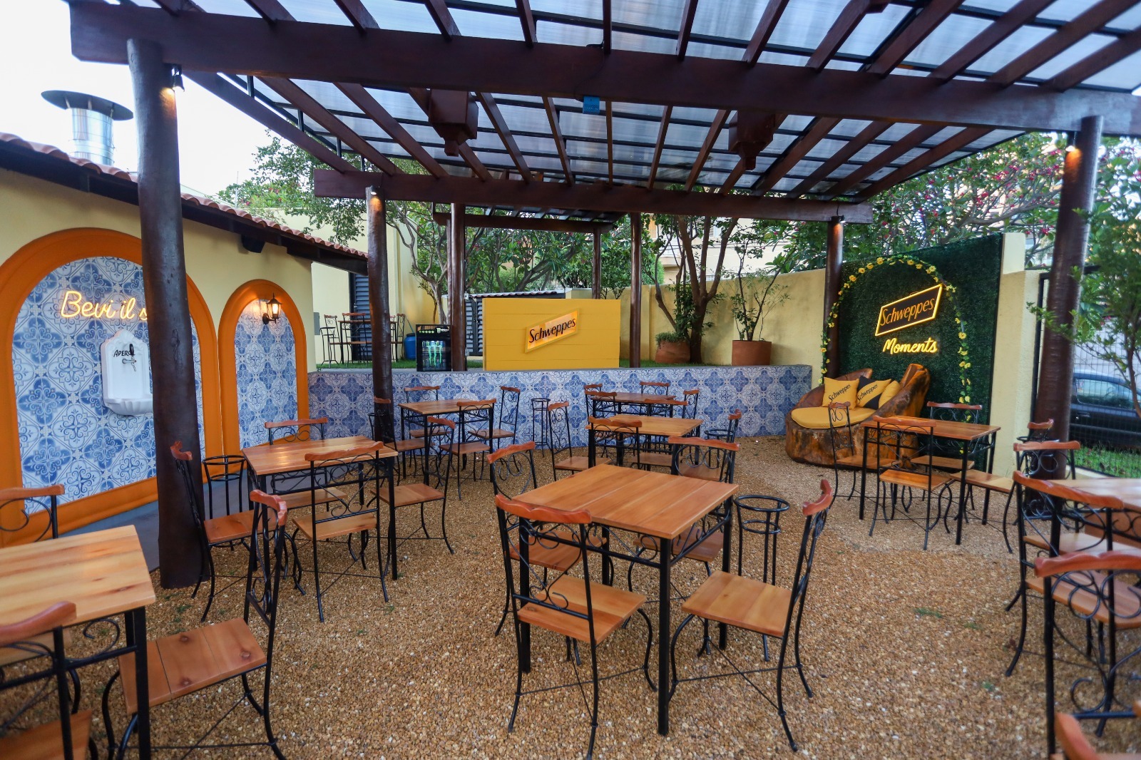 O ambiente do bar também foi pensado para remeter à Itália. “A ideia é que a pessoa se sinta em um jardim italiano. Tem pedras no chão, madeira, mosaico na parede e um limoeiro de limão siciliano. É como o interior da Toscana em Campo Grande”, descreve.