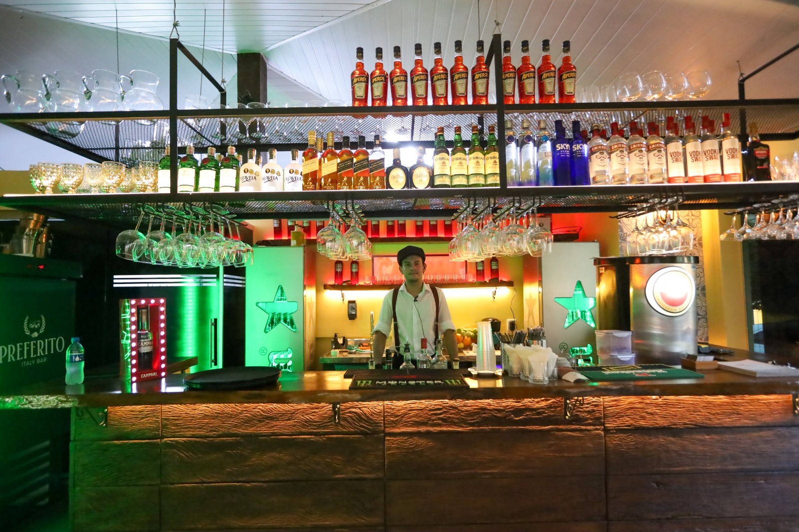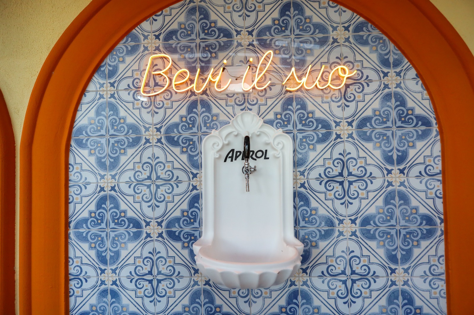 Bar é inspirado na Itália e cliente serve Aperol direto na fonte