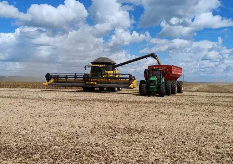 Colheitadeira trabalha em plantação de soja (Foto: Arposoja)