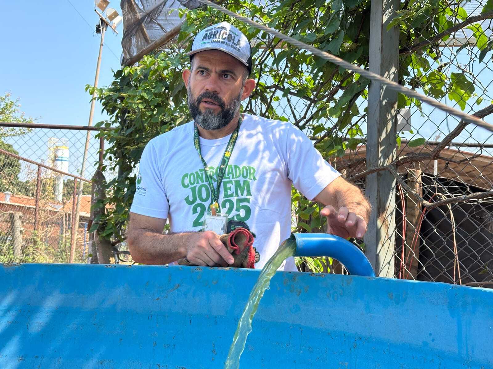 “Os alunos ajudaram: eles vieram aqui, viram, trouxeram as caixas e conferiram como é o sistema. É mais fácil para a gente, adultos, chegar e fazer, mas, quando eu faço isso, deixo de criar amor naquilo que a criança está produzindo, para ela dizer que é dela também, porque, quando uma coisa é minha, eu cuido com o melhor cuidado e maior atenção”, explica Regivaldo Ortega, coordenador do campo.