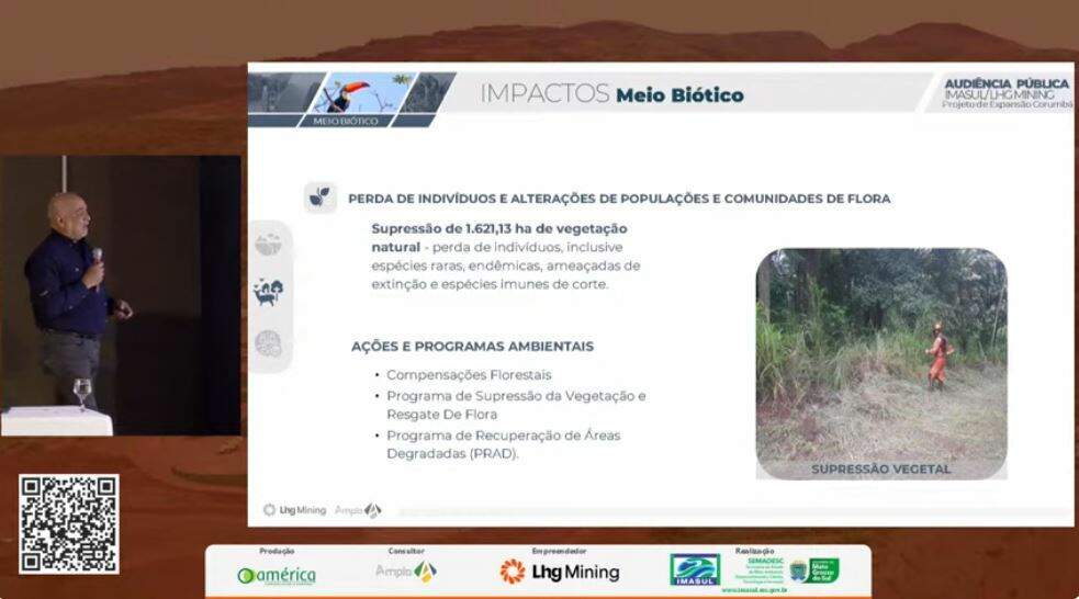 O RIMA (Relatório de Impacto Ambiental), apresentado durante audiência pública na noite desta quinta-feira (2), de forma presencial e virtual, gerou polêmica entre os moradores impactados pela mineradora, que tentaram debater o assunto. Durante o encontro, o diretor-presidente do Imasul (Instituto de Meio Ambiente de Mato Grosso do Sul), André Borges Barros de Araújo, afirmou que a proposta era esclarecer dúvidas e não debater ideias.