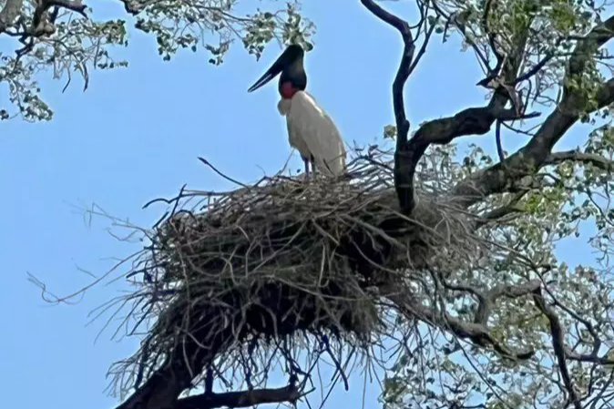 Três tuiuiús passaram a ser monitorados pelo Ibama (Instituto Brasileiro do Meio Ambiente e dos Recursos Naturais Renováveis) em Mato Grosso do Sul após o ninho quase ser atingido por um incêndio.