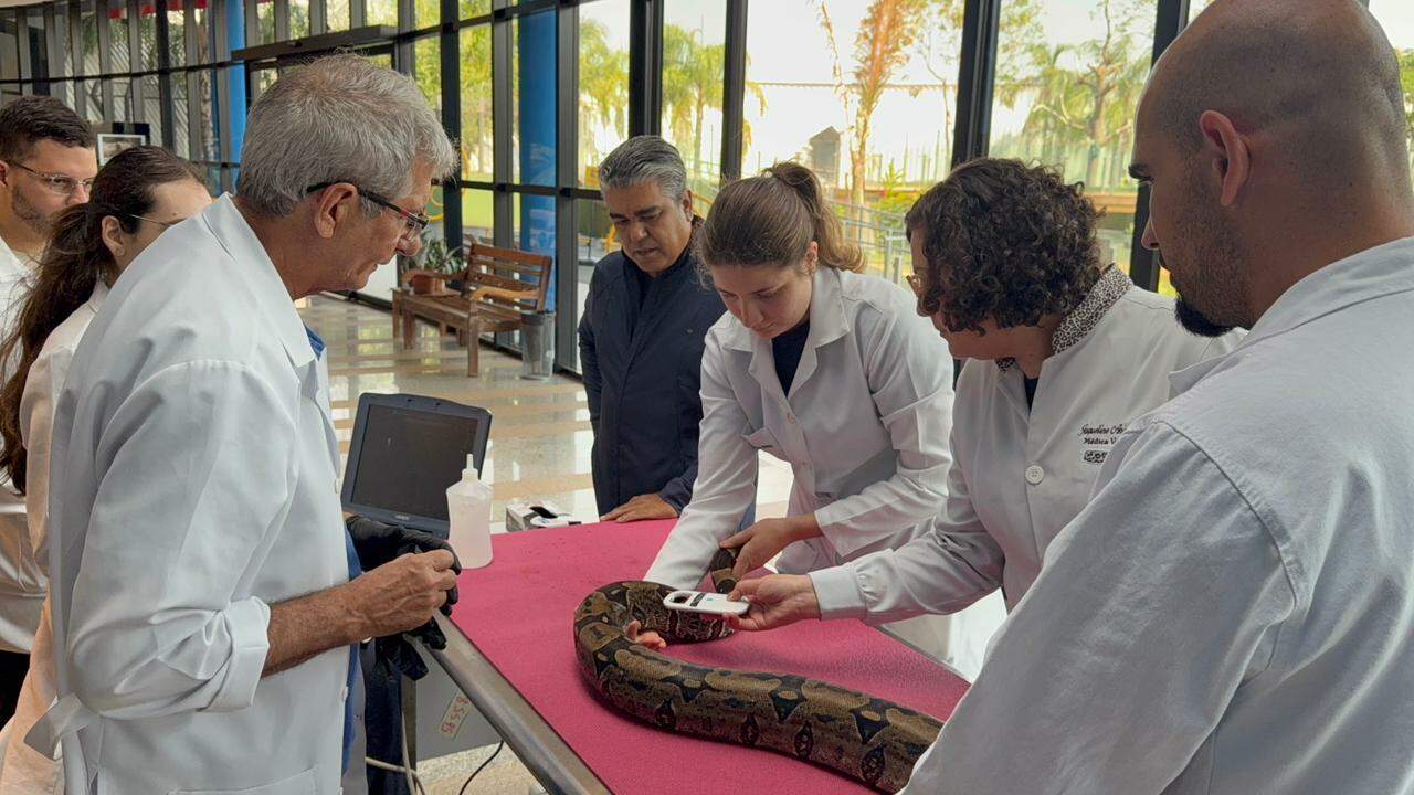 A bióloga-chefe do Bioparque, Carla Kovalski, explica que os exames são realizados em todas as serpentes, seguindo protocolos de manejo e bem-estar animal para evitar o estresse. No caso da jiboia, o procedimento é feito sem anestesia, utilizando um cano de contenção, por causar menos desconforto.