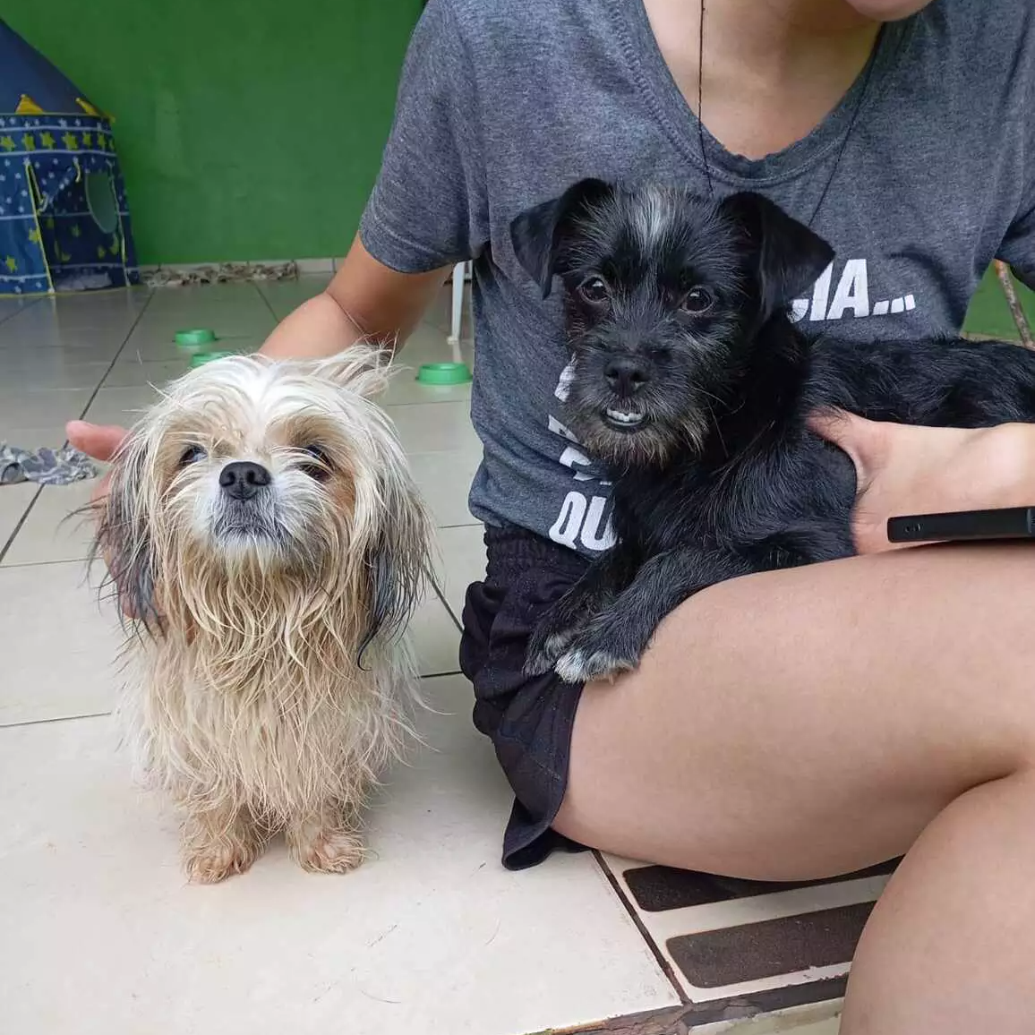 Dois cachorros, uma fêmea branca da raça Shih Tzu e um macho preto sem raça definida, foram encontrados na tarde de sábado (18) na Avenida dos Cafezais, próximo ao Supermercado Pires, no Bairro Paulo Coelho Machado, em Campo Grande. O resgate foi feito por uma farmacêutica que, ao buscar a namorada na farmácia, notou os animais caminhando pela ciclovia em meio à chuva forte.