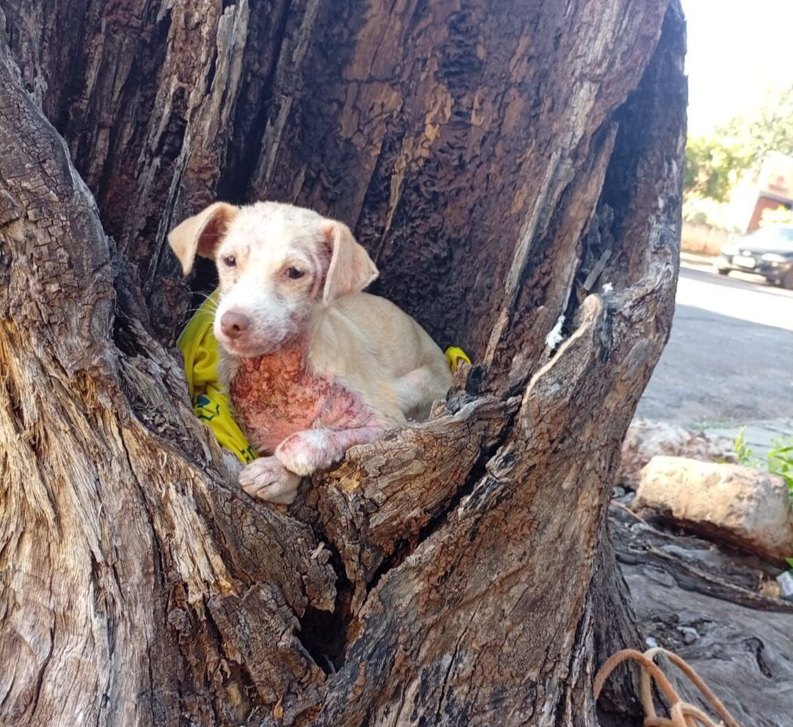 Nina, uma filhote encontrada com feridas pelo corpo e uma corda amarrada ao pescoço, mobilizou moradores de um condomínio no bairro Amambaí. Eles se uniram para salvá-la e, desde então, buscam um lar definitivo para ela.
