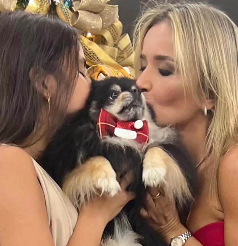 Mãe (de rosa) e filha beijam Bolt, o xodó da família (Foto: arquivo pessoal)