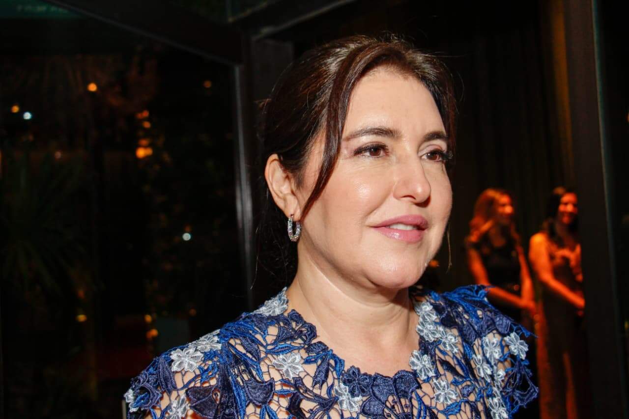 A ministra do Orçamento e Planejamento, Simone Tebet, durante entrevista na entrada do receptivo. (Foto: Juliano Almeida)